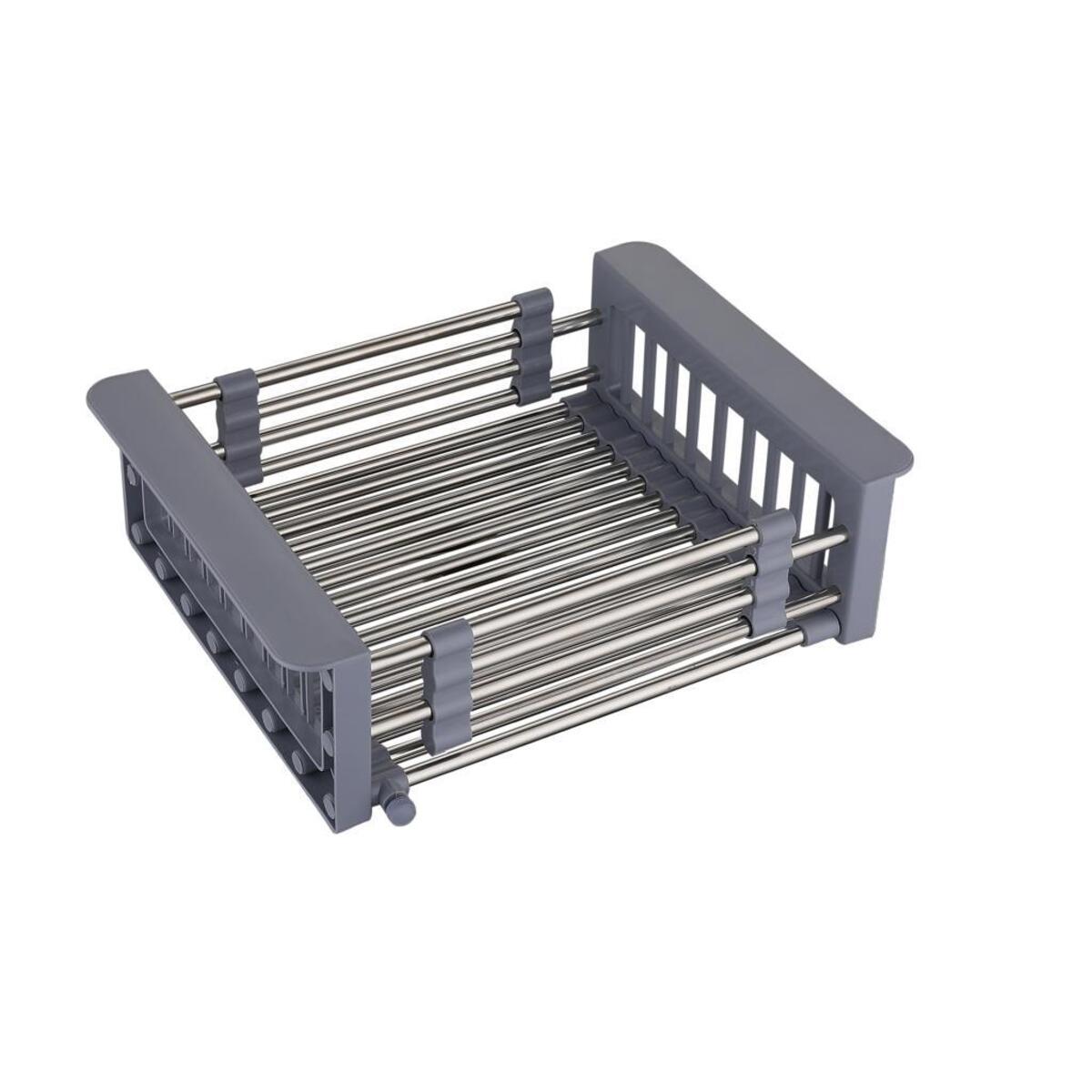 Коландер (корзина) раздвижной для кухонной мойки. Материал: платик+нержавеющая сталь. Цвет пластика: серый. Минимальная длина - 33,6 см. Максимальная длина - 44,8 см.