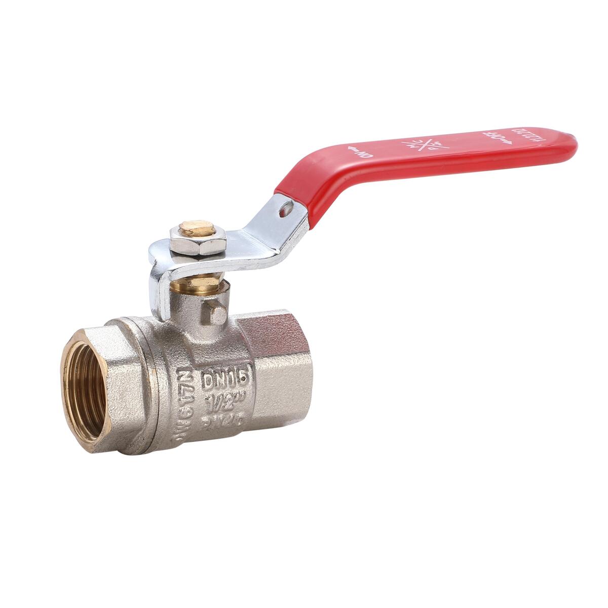 Кран шаровой. Вид: прямой кран. Назначение: вода. Тип ручки: ручка. Тип арматуры: запорная. Материал: корпус- латунь,  шарик-латунь. Тип резьбы: 1/2F-1/2F (1/2 гайка-гайка). Тип присоединения: резьбовой