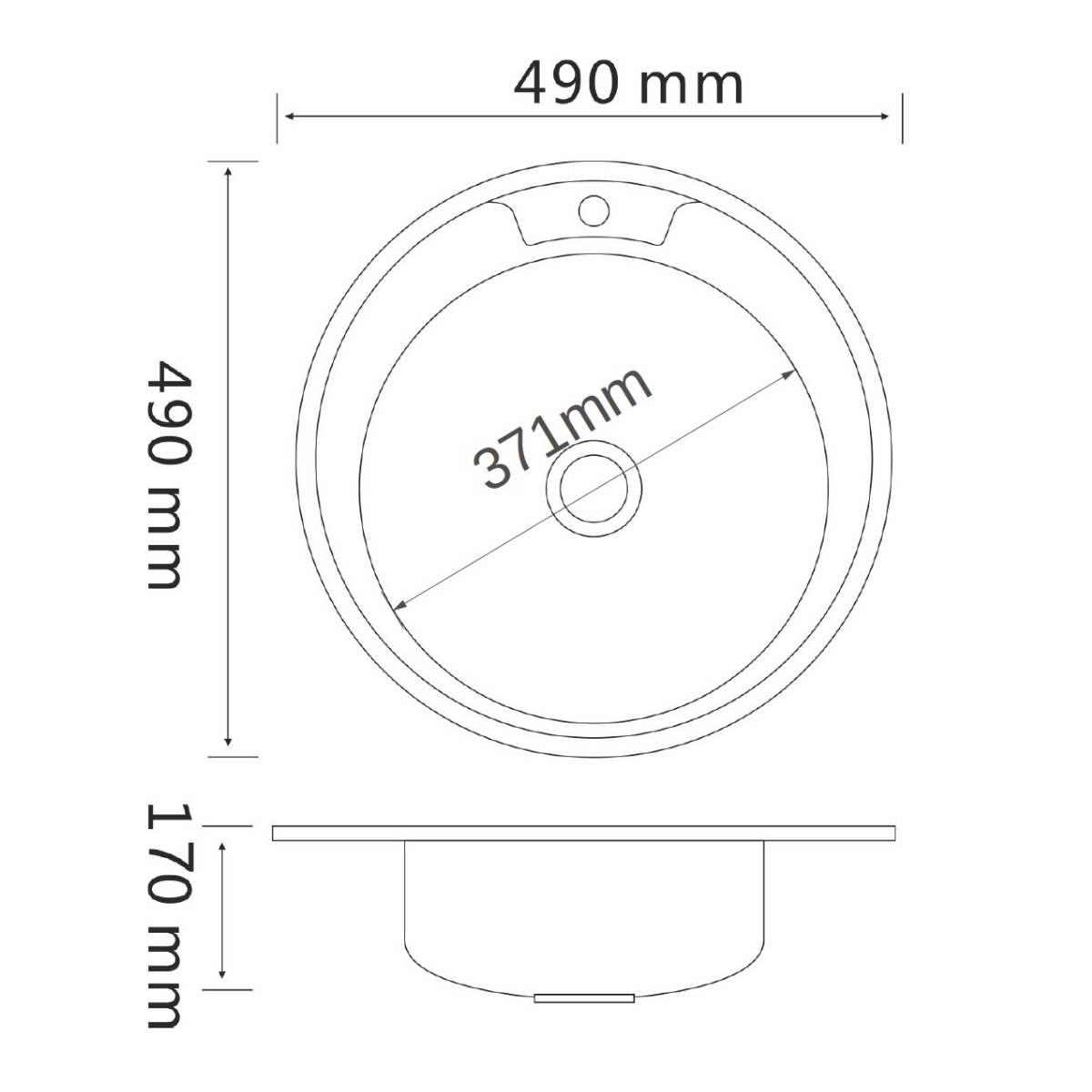 Кухонная мойка декор, толщина 0,6мм, диаметр 490мм, глубина чаши 170мм материал нержавейка, в комплекте евро сифон
