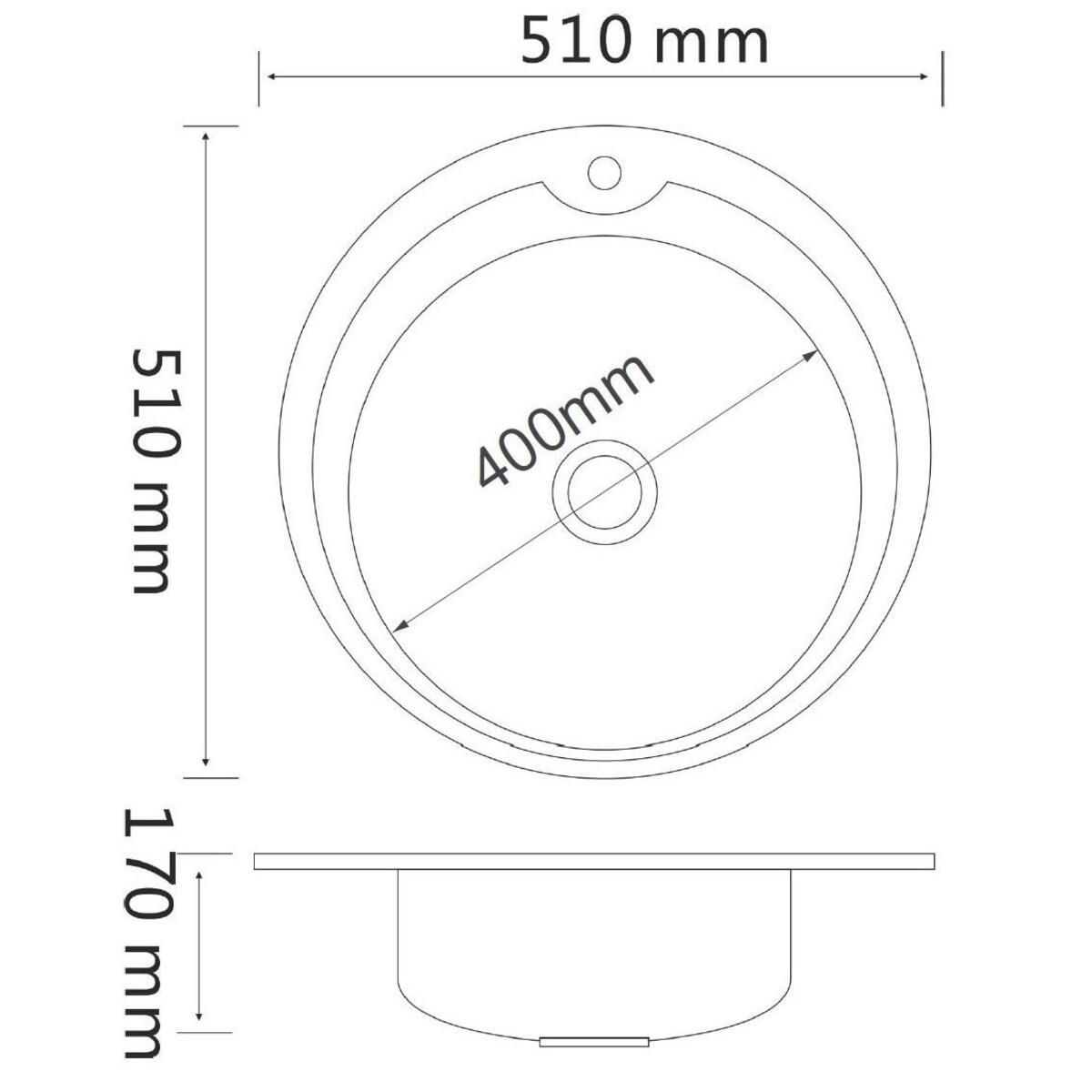 Кухонная мойка глянцевая, толщина 0,6мм, диаметр 510мм, глубина чаши 170мм материал нержавейка, в комплект евро сифон