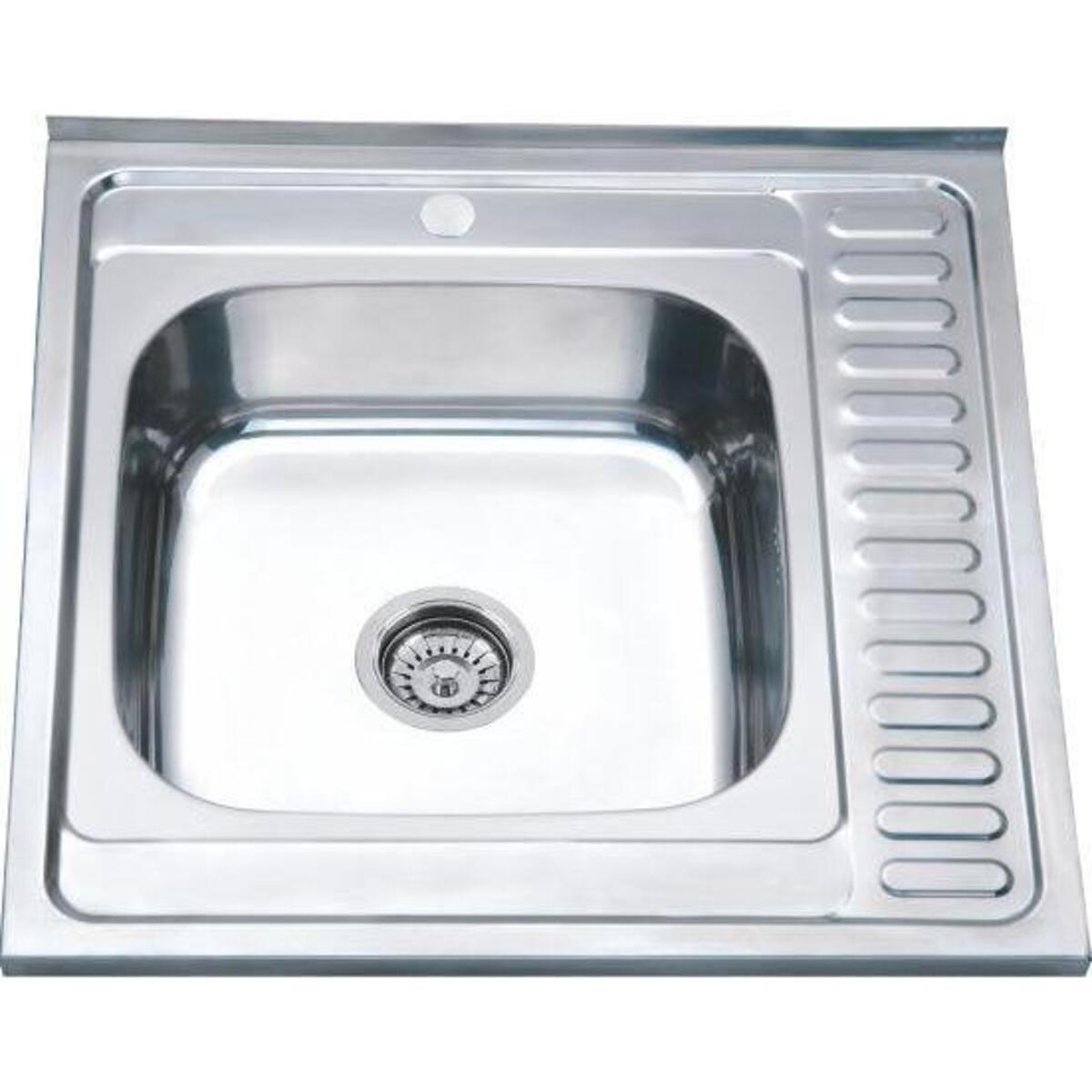 Накладная мойка для кухни из нержавеющей стали РМС, выполнена в стандартной квадратной форме, что позволяет удачно вписать модель в кухонный гарнитур.