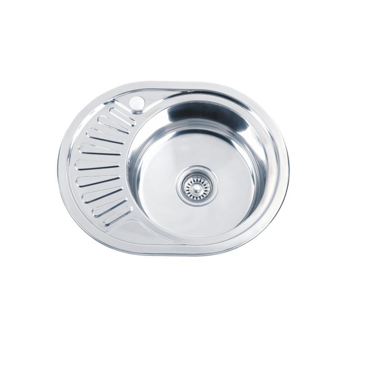 Врезная мойка для кухни из нержавеющей стали РМС, выполнена в стандартной овальной форме, что позволяет удачно вписать модель в кухонный гарнитур.