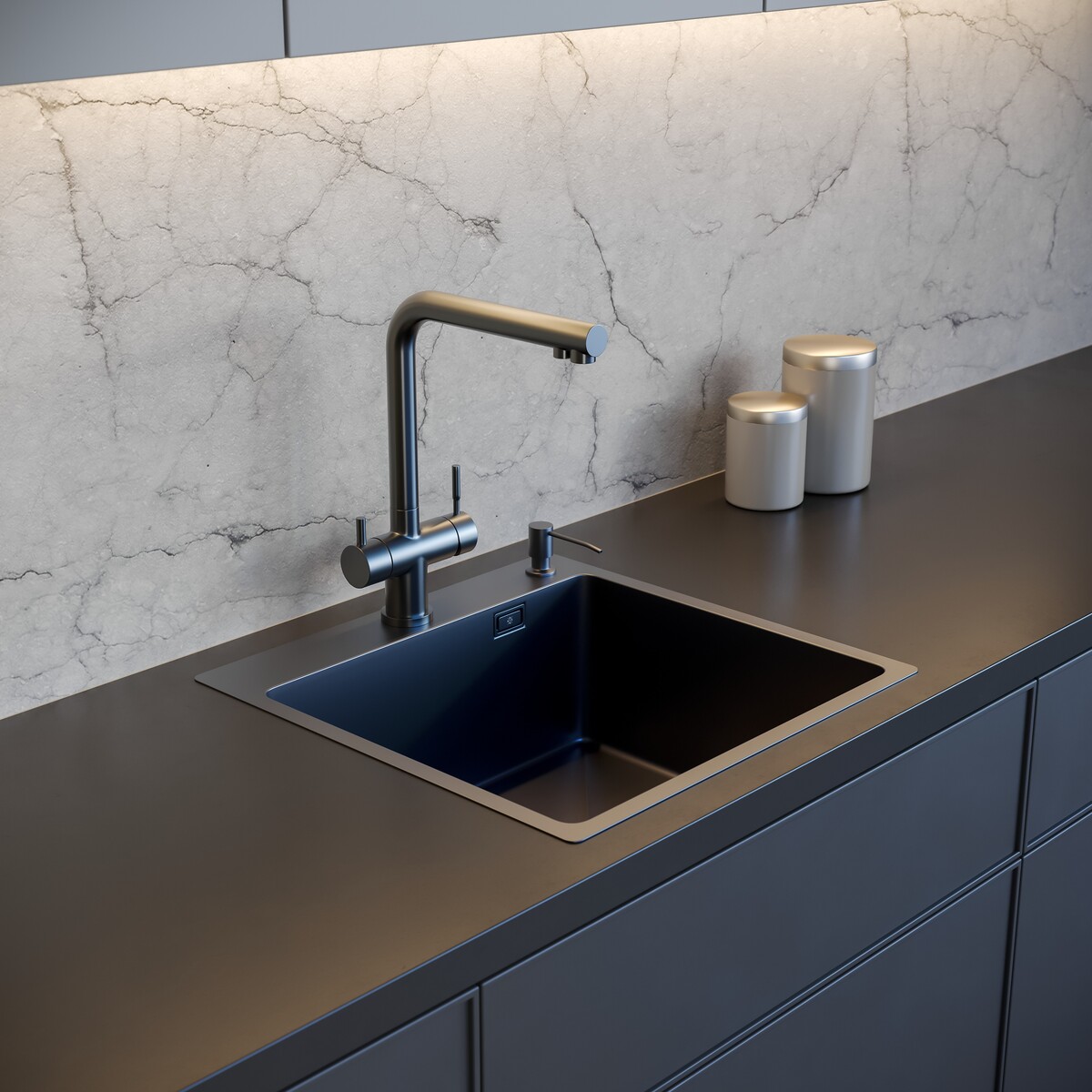 Очевидная особенность этих моек в цвете. Черный отлично будет сочетаться с темной столешницей и контрастировать со светлой. Мойка графит бренда РМС легко станет интересным акцентом на вашей кухне.