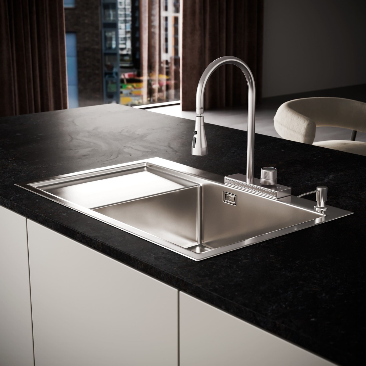 Кухонная мойка, дозатор врезной, евросифон, комплект крепления