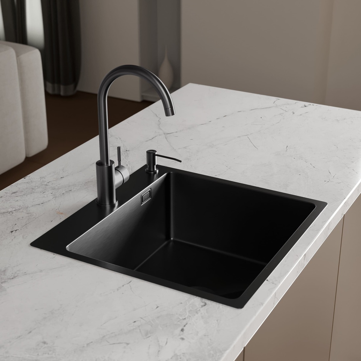 Очевидная особенность этих моек в цвете. Черный отлично будет сочетаться с темной столешницей и контрастировать со светлой. Мойка графит бренда РМС легко станет интересным акцентом на вашей кухне.