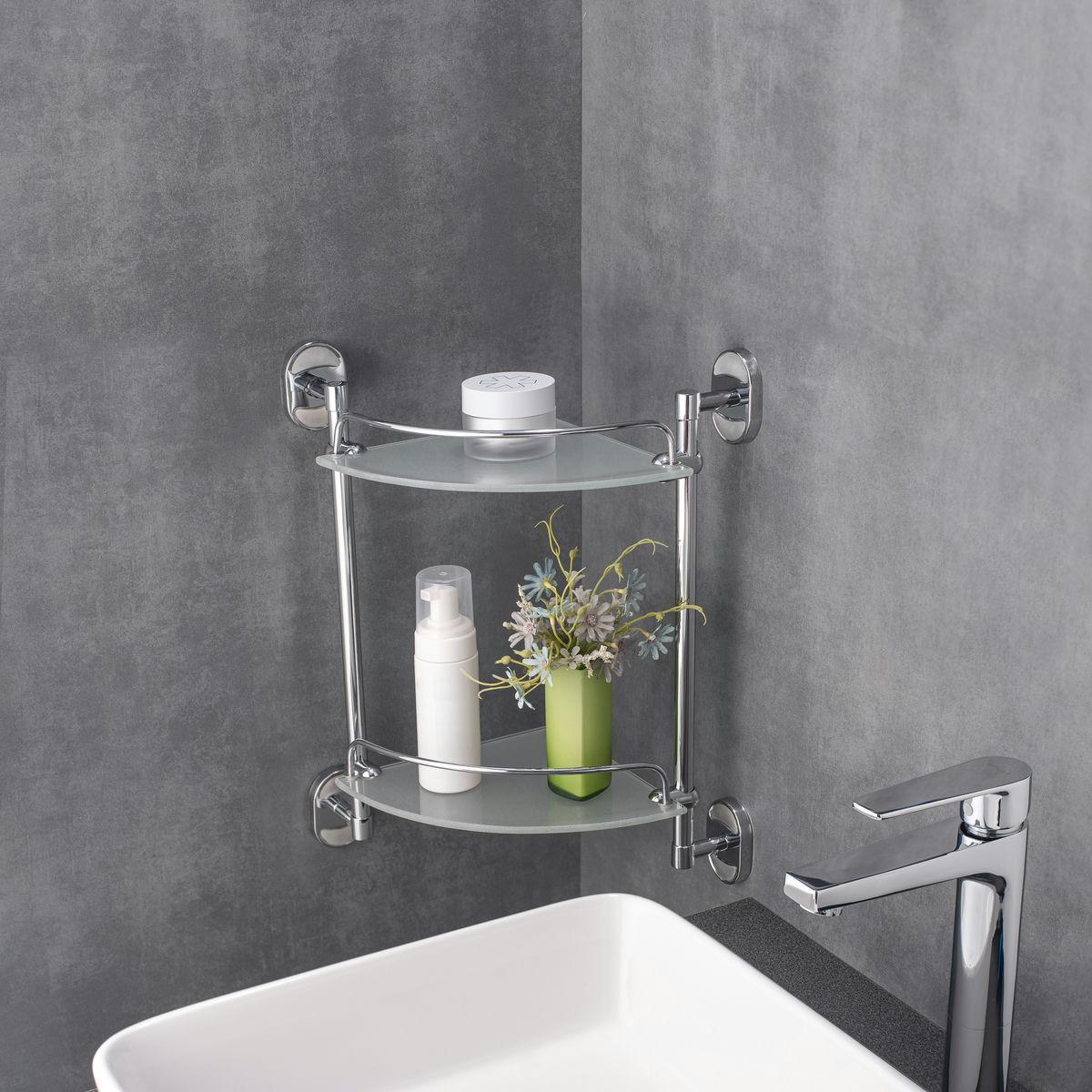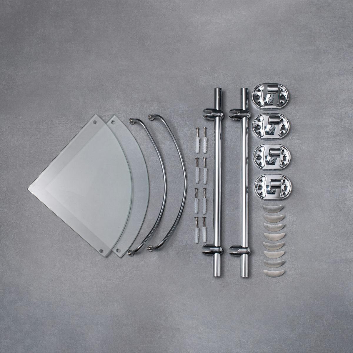 —Полка для ванной комнаты стеклянная РМС A9010 угловая двойная