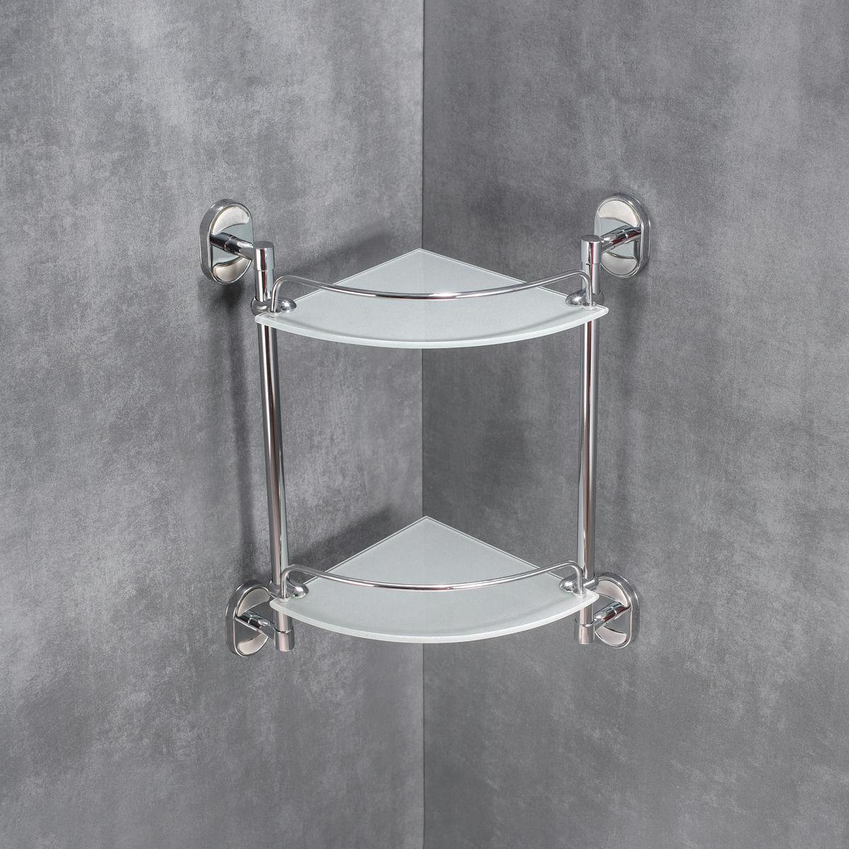 Полка для ванной комнаты стеклянная РМС A9010 угловая двойная
