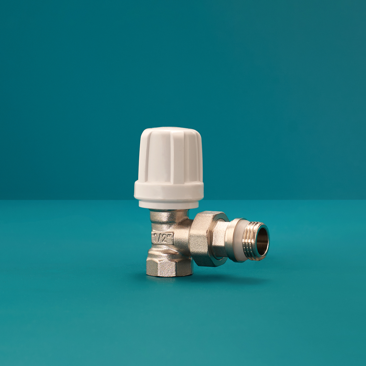 Радиаторный клапан. Материал: латунь. Вид: угловой. Тип резьбы: 1/2F-1/2М