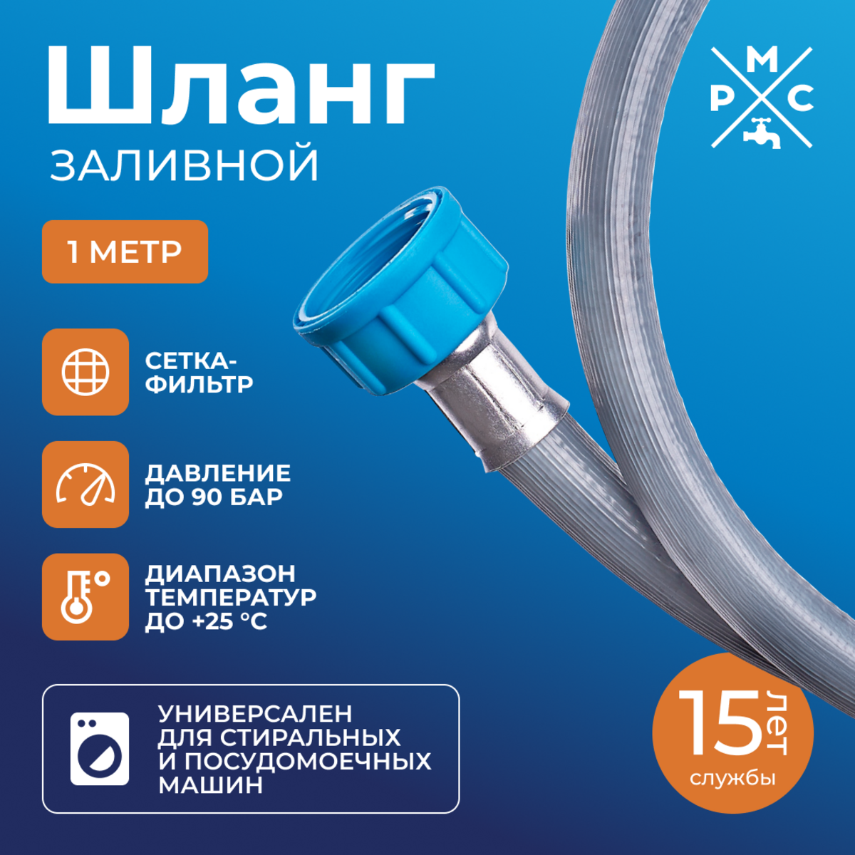 —Шланг заливной "РМС" ШЗ-1 для стиральных и посудомоечных машин 1,0 м
