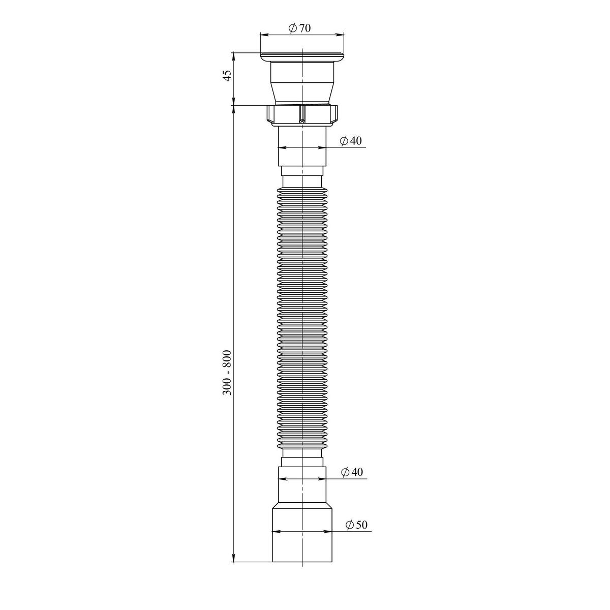 Сифон гофрированный универсальный 800 мм, прикручивающийся выпуск 1 ½ (40), винт 6х80, чашка из нержавеющей стали, гибкий отвод в канализацию 40х40/50