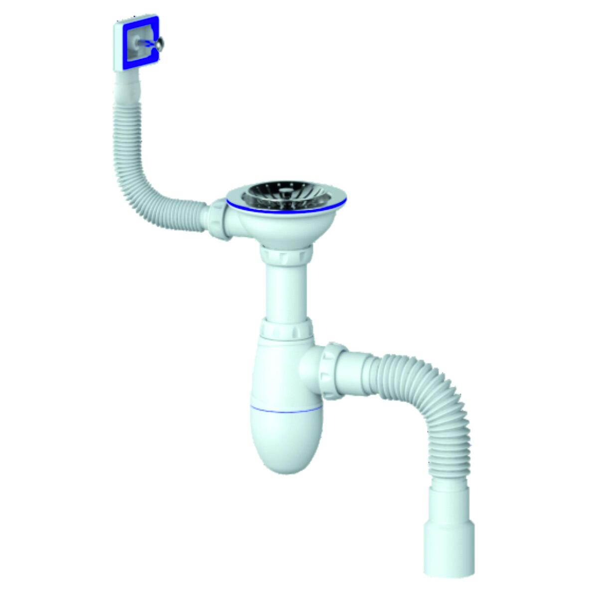 B425P Сифон "Unicorn" для мойки с прямоугольным переливом (с гибким отводом)