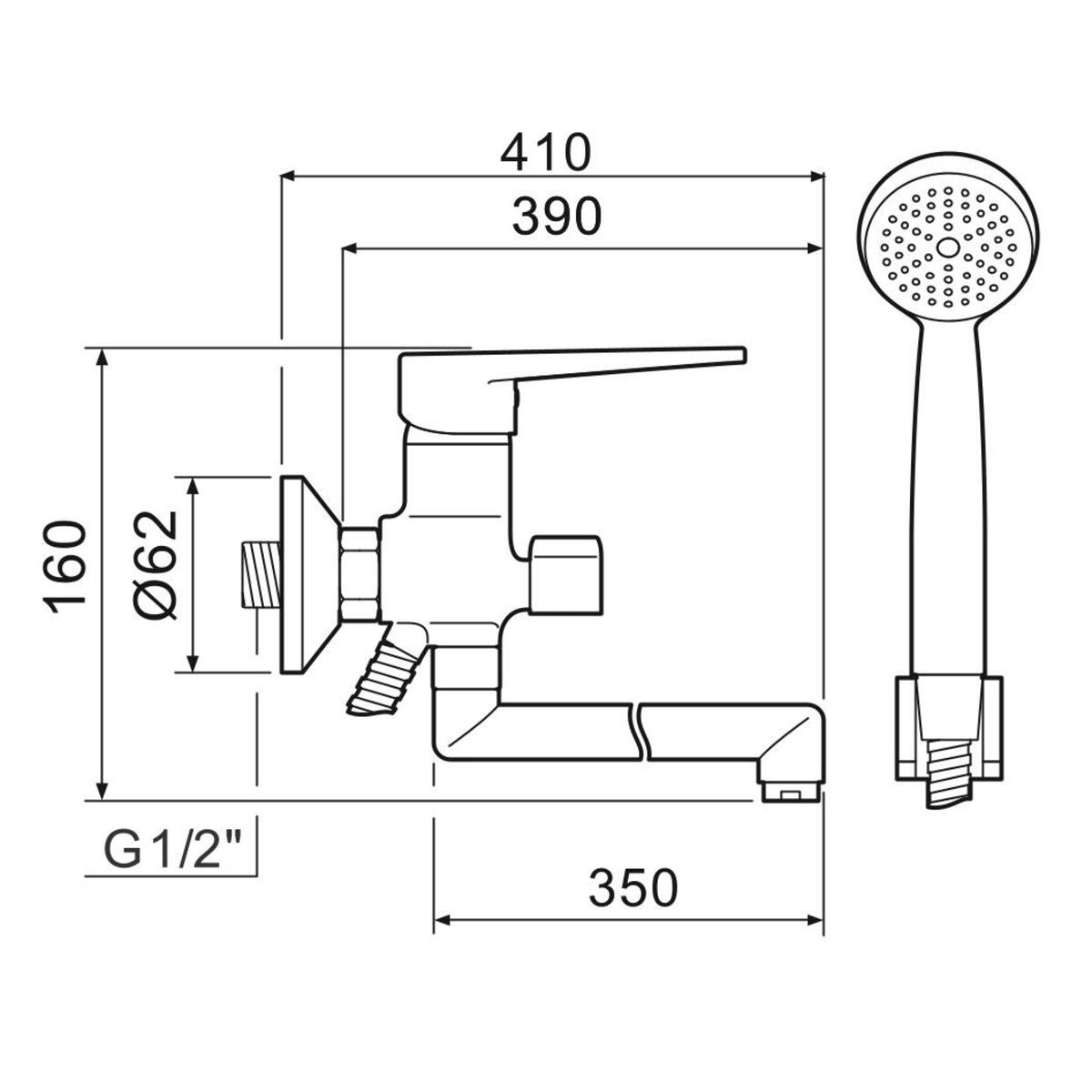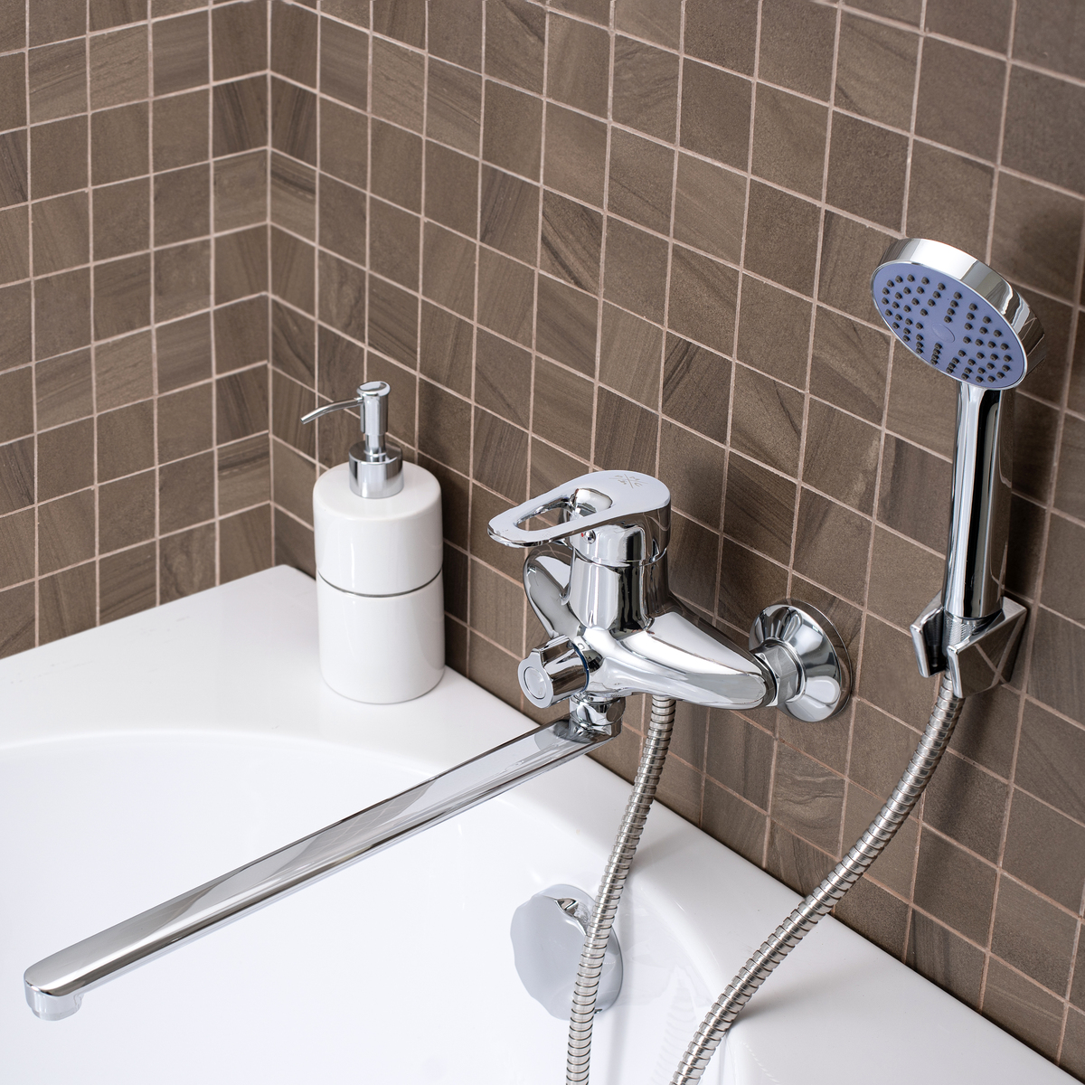 Покрытие: хром. В комплекте: эксцентрики, отражатели, металлический шланг для душа 1,5м, лейка для душа