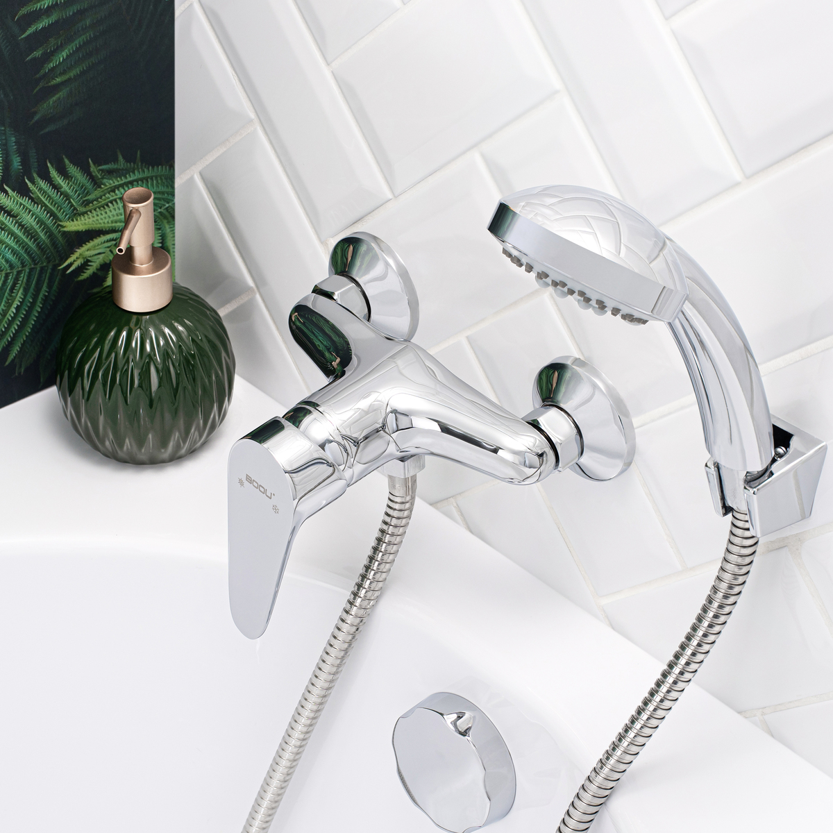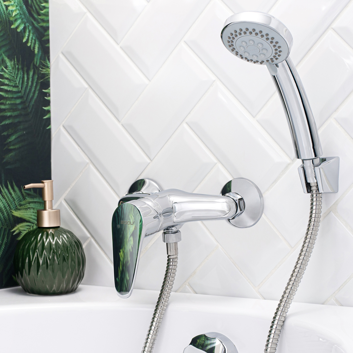В комплекте удобная трехрежимная лейка с гибким шлангом и настенный держатель.