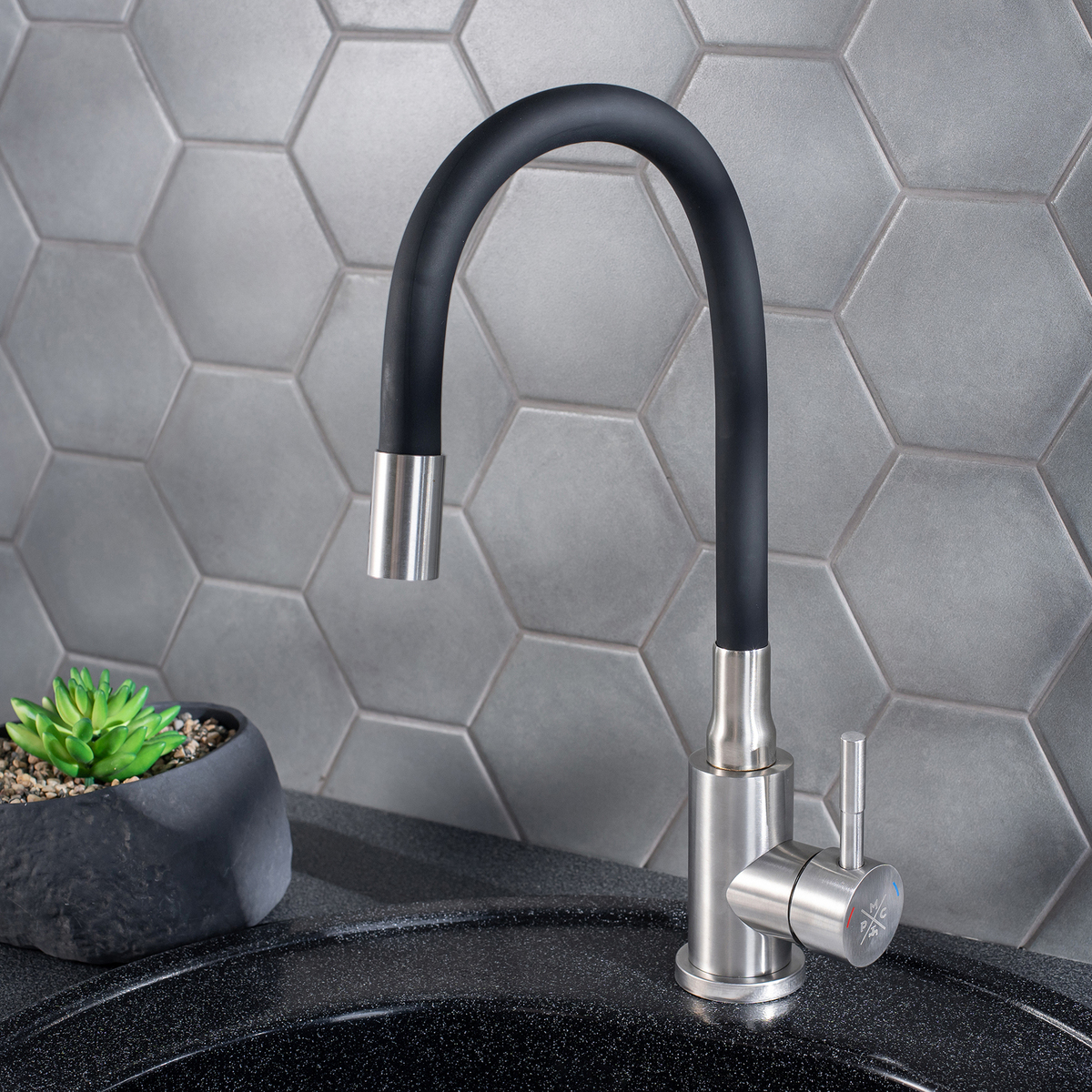 Смеситель для кухни с высоким гибким изливом