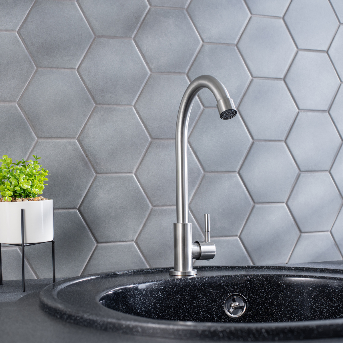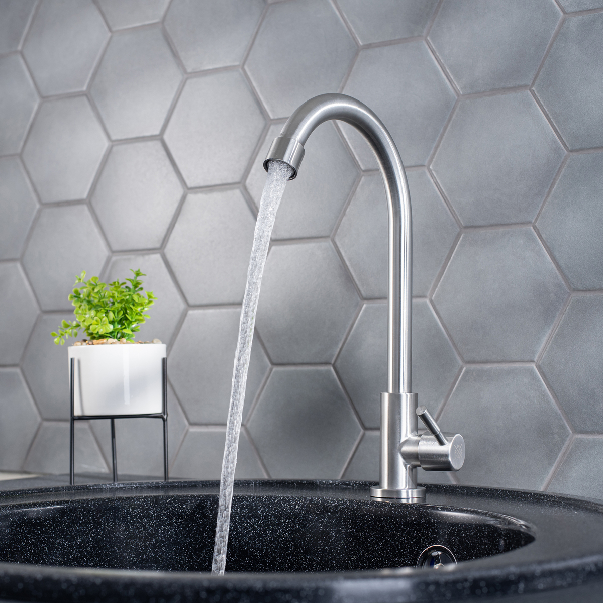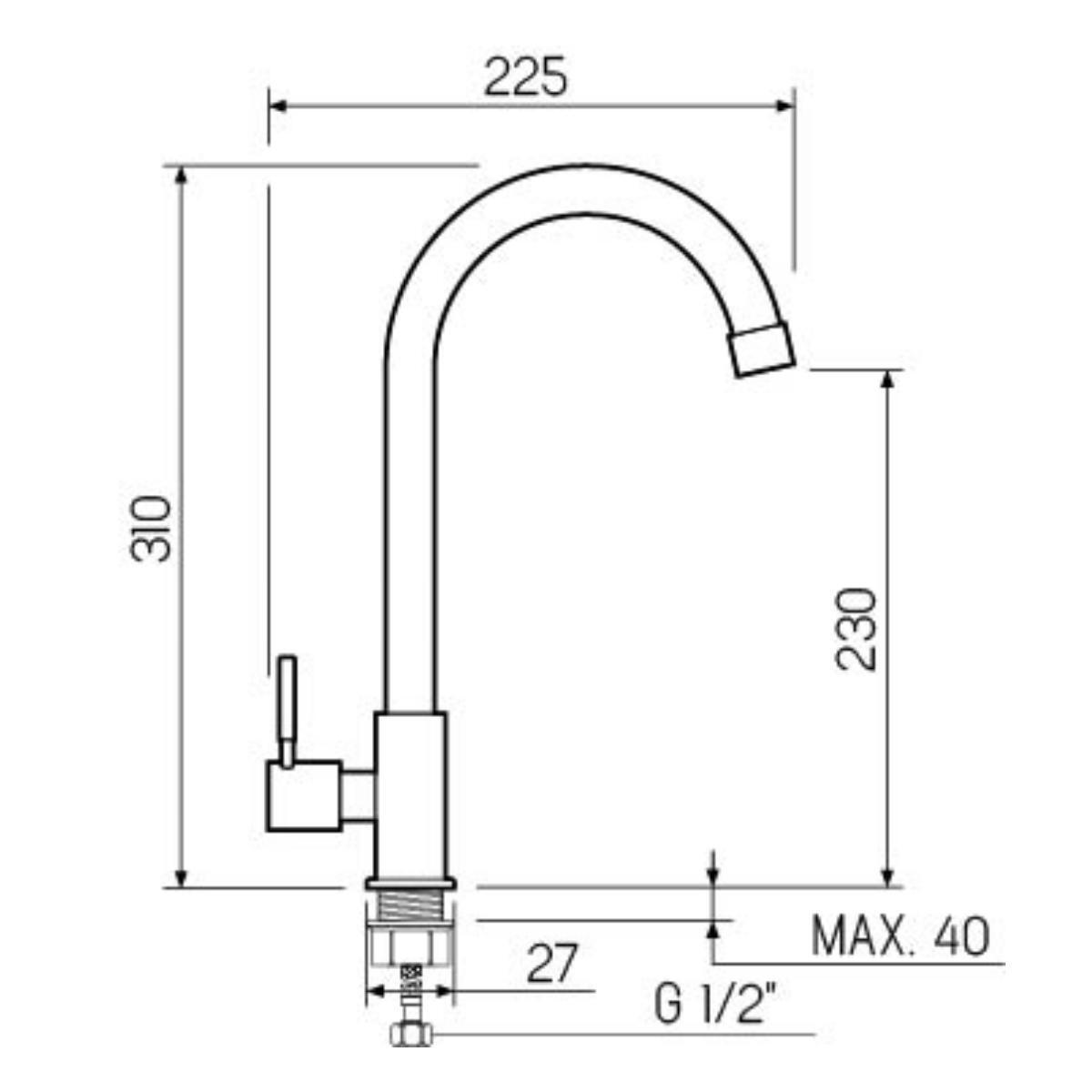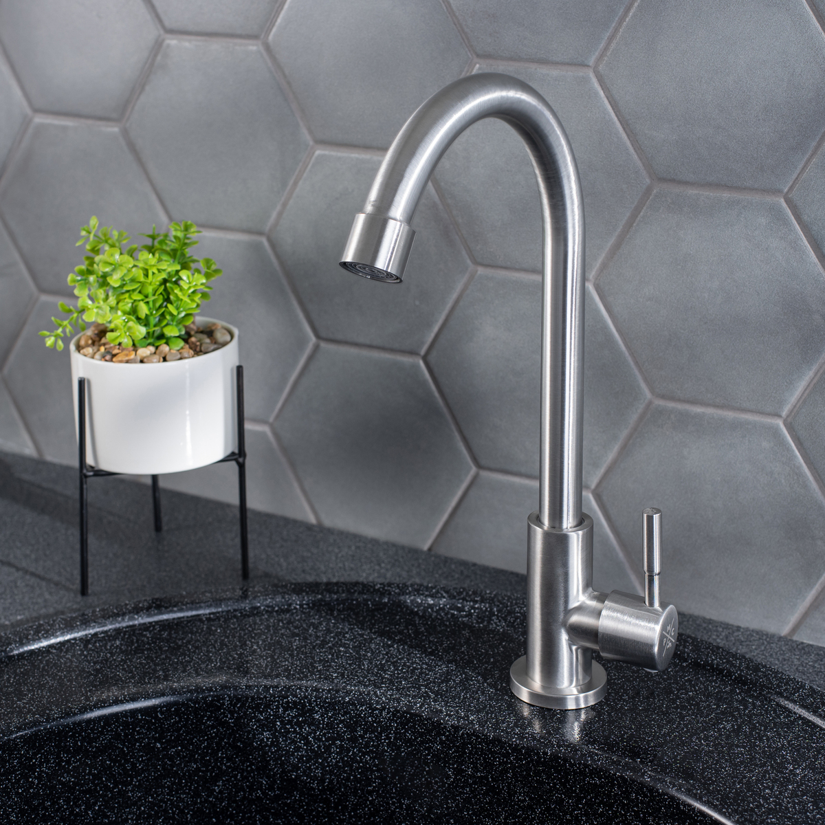 Кран для кухни для одной воды с высоким поворотным изливом