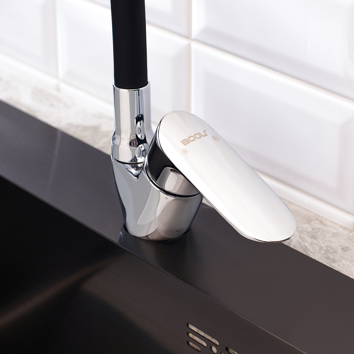 Установка смесителя крайне проста, так как предусматривает минимальное количество крепежных деталей. Уникальная особенность смесителей BOOU, в том, что в комплекте мы предоставляем монтажный ключ для самостоятельной установки, салфетку из микрофибры для правильного ухода и подводку 60 см. В изготовлении подводки используется нержавейка, что в условиях влажности обеспечивает устойчивость к коррозии. Съемный аэратор гарантирует ровный и мягкий поток воды без брызг, а также экономит расход воды.