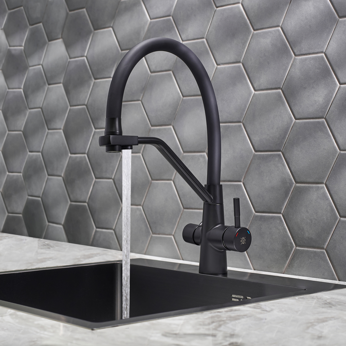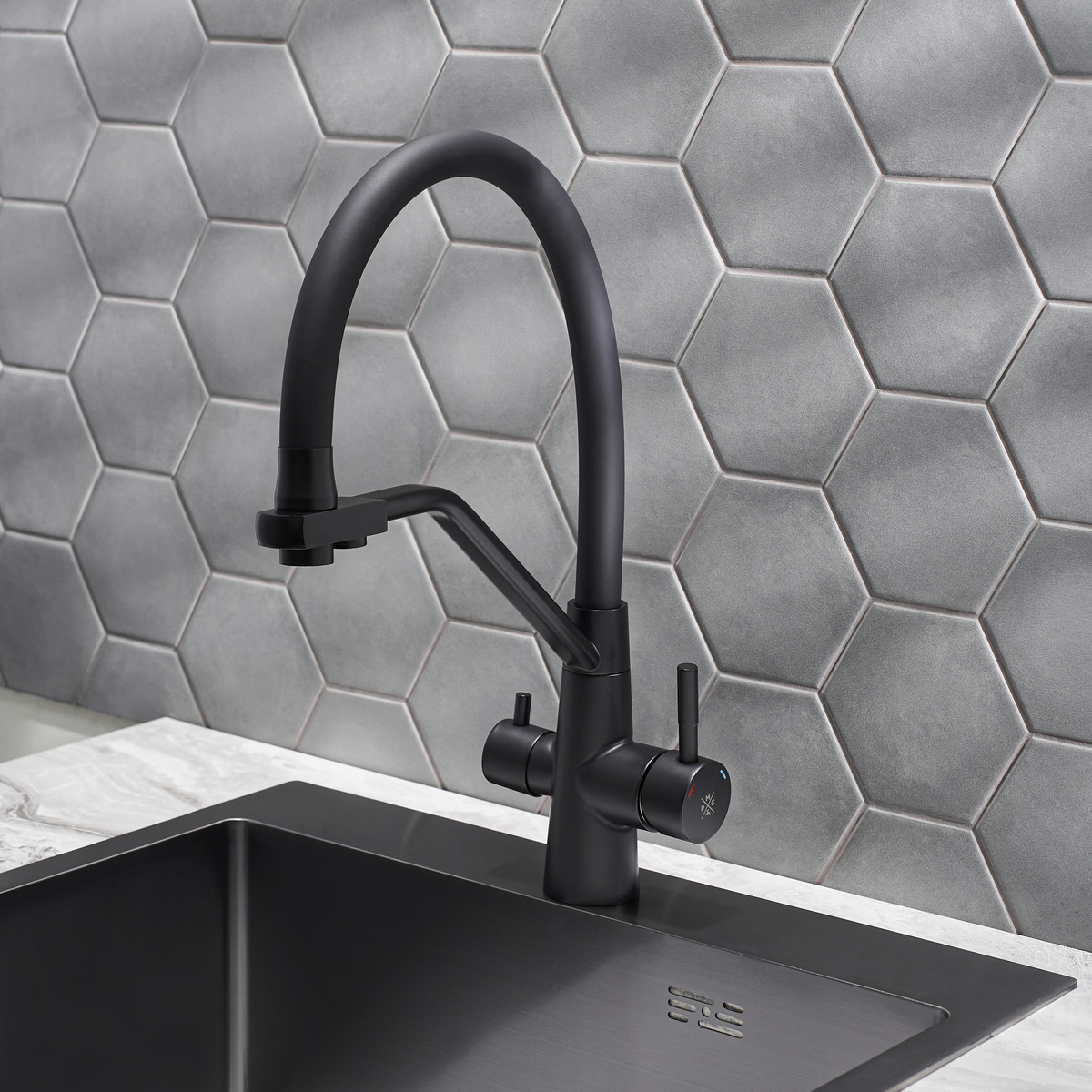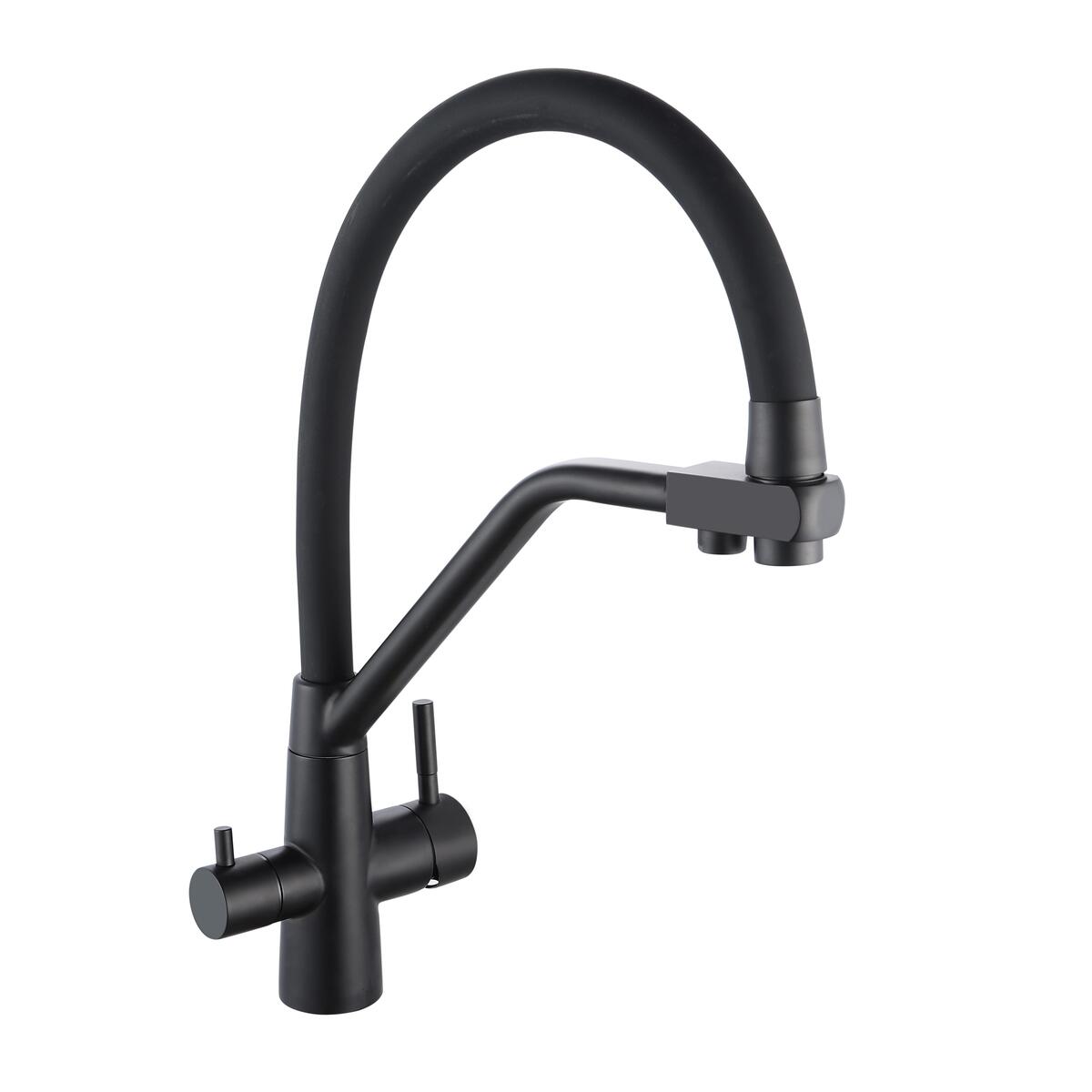 Смеситель для кухни с переключением фильтра для питьевой воды с высоким поворотным изливом.