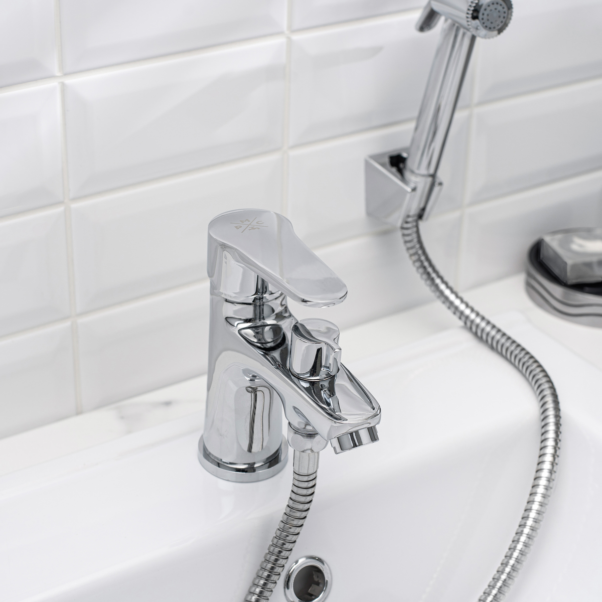 В комплекте: гибкая подводка, шланг для душа 1,5м, лейка для душа