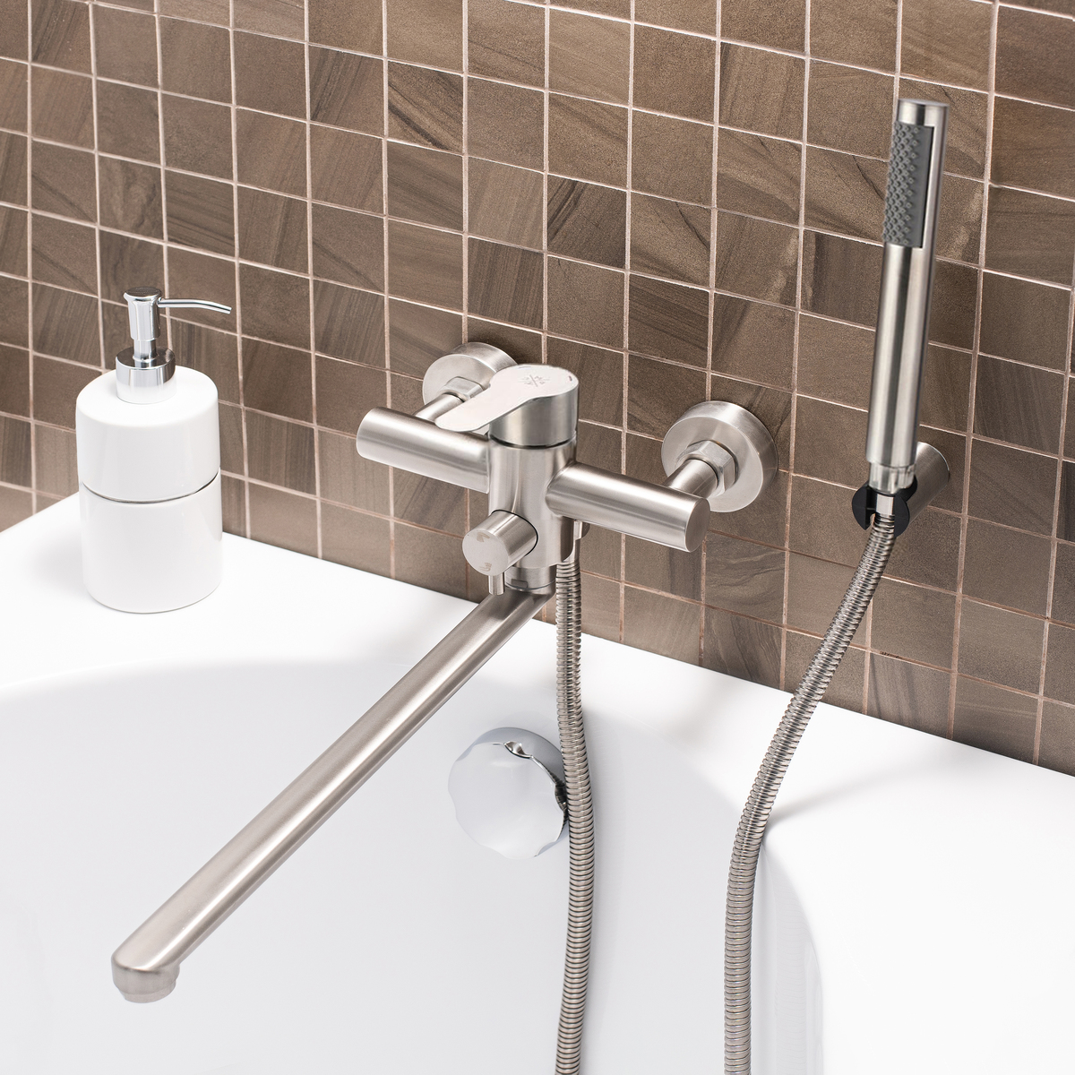 При производстве смесителей ТМ РМС используются только высококачественные материалы. Смесители серии SUS124 выполнены из нержавеющей стали, что является гарантией качества и долговечности, устойчивы к царапинам и перепадам температур, экологичны и безопасны для вашего здоровья, Поверхность не потеряет со временем свой роскошный вид, а уход за ней сводится к протиранию мягкой салфеткой. Установка смесителя крайне проста. Смесители РМС это сертифицированный продукт с 7-летней гарантией. В комплекте идут эксцентрики, отражатели, металлический шланг для душа 1,5м и лейка для душа.