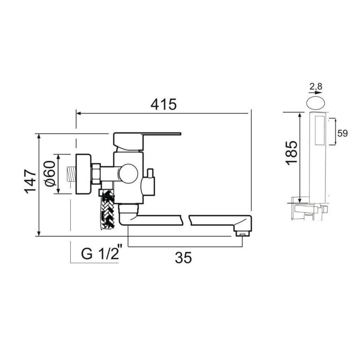 Смеситель для ванны с длинным изливом