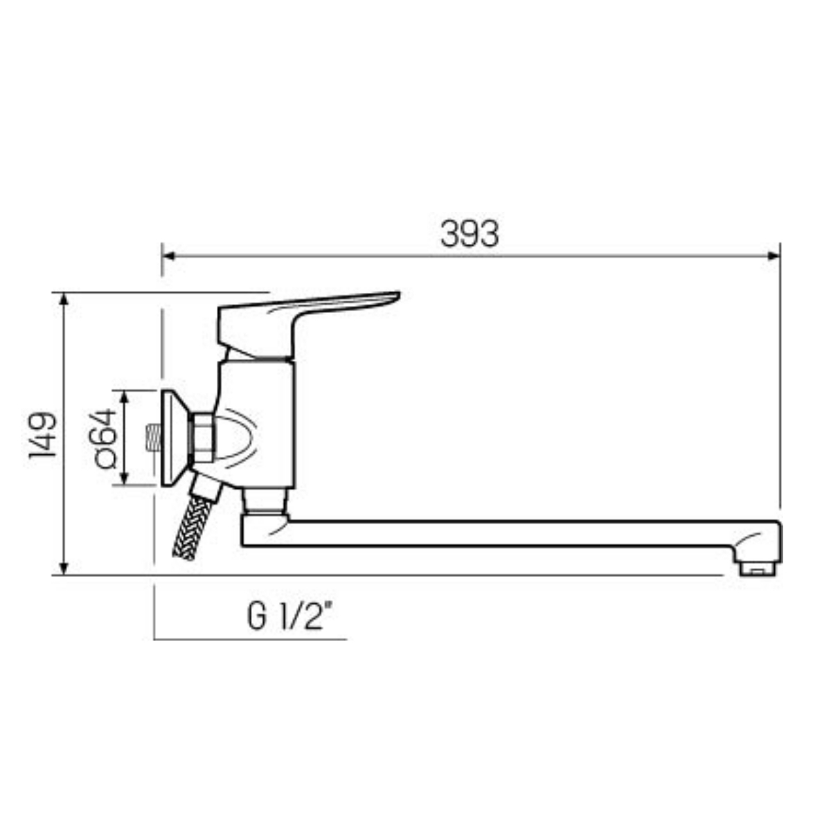 Смеситель для ванны с длинным поворотным изливом