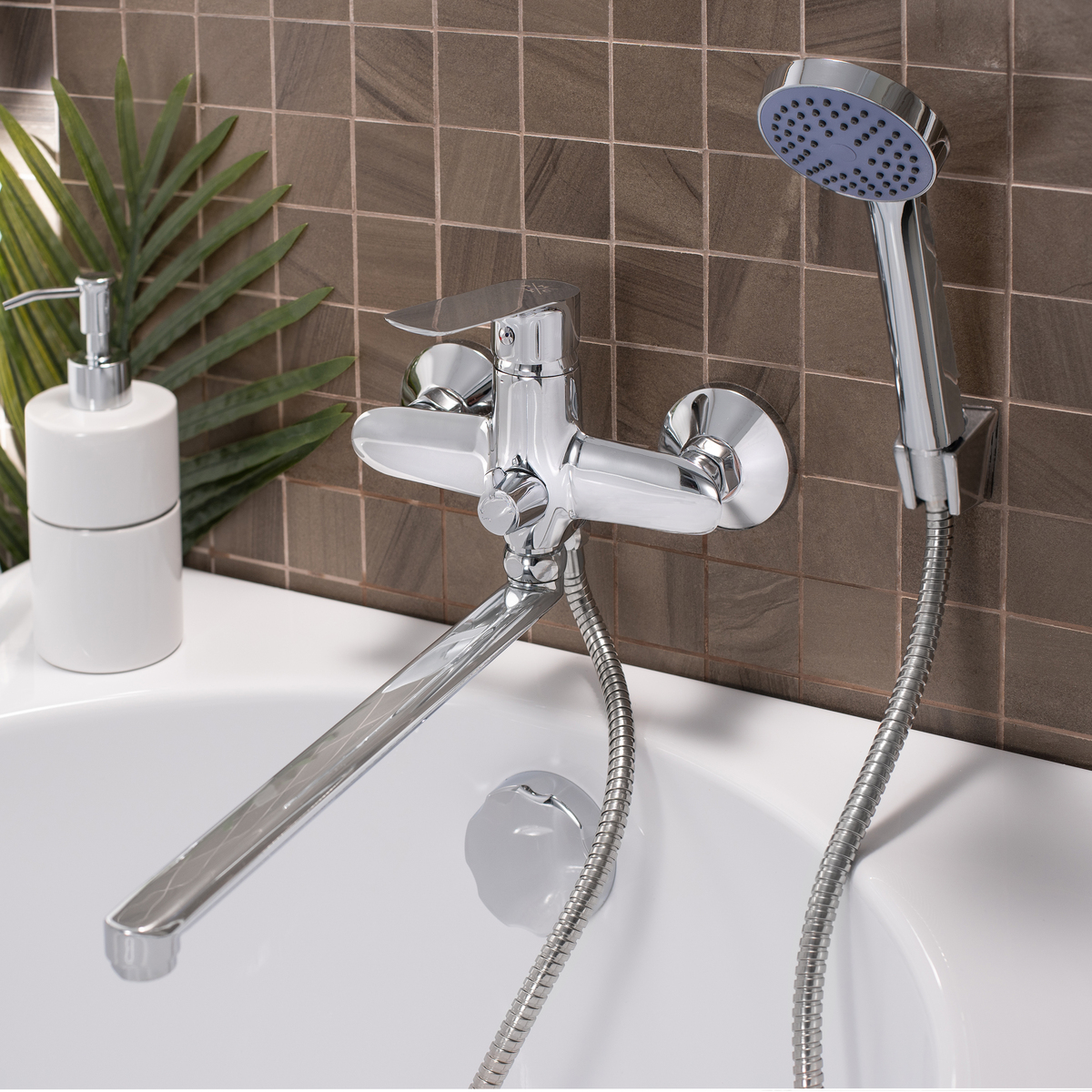 Смеситель для ванны с длинным поворотным изливом