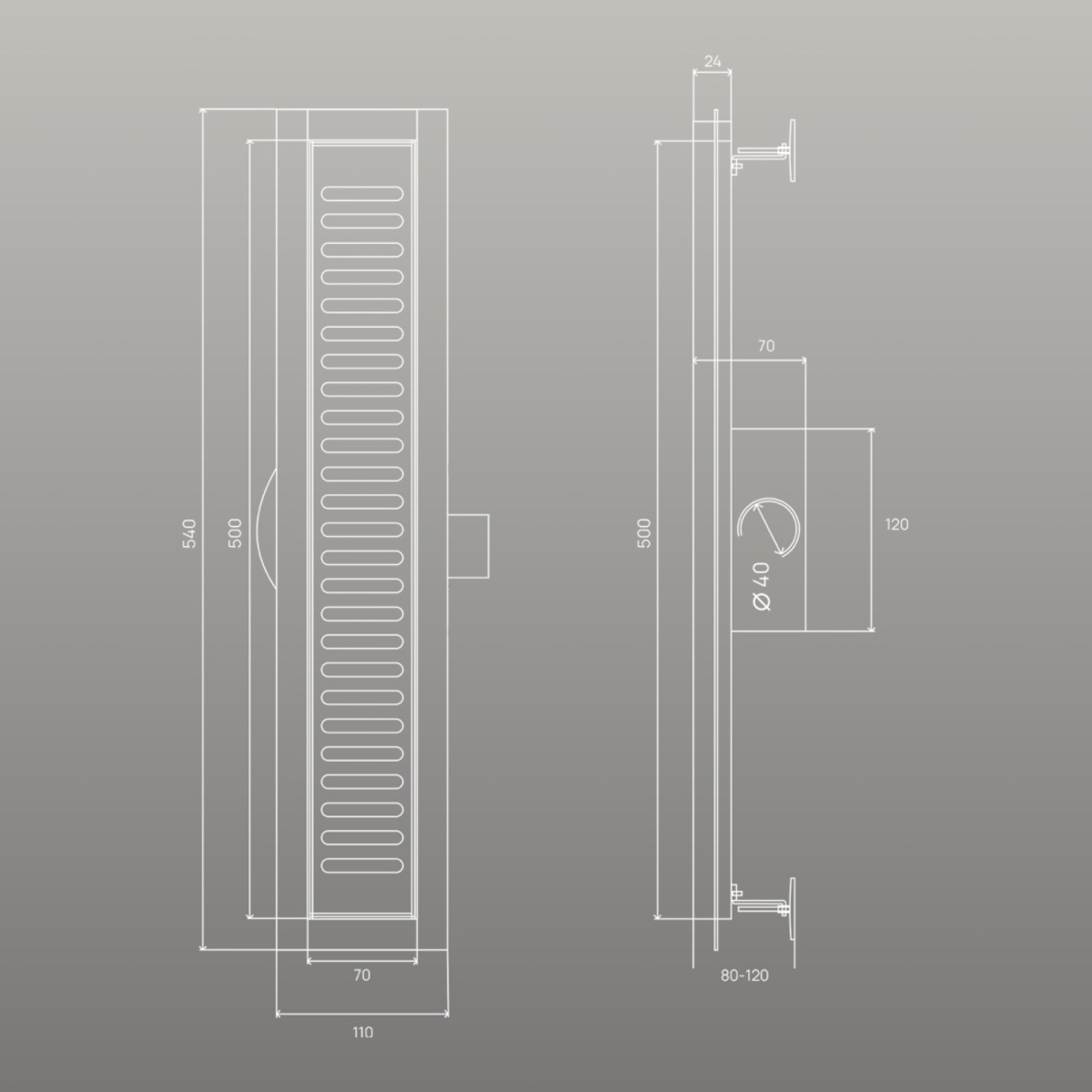 —Трап для душа линейный РМС ТЛ03-50х7см Нержавеющая сталь