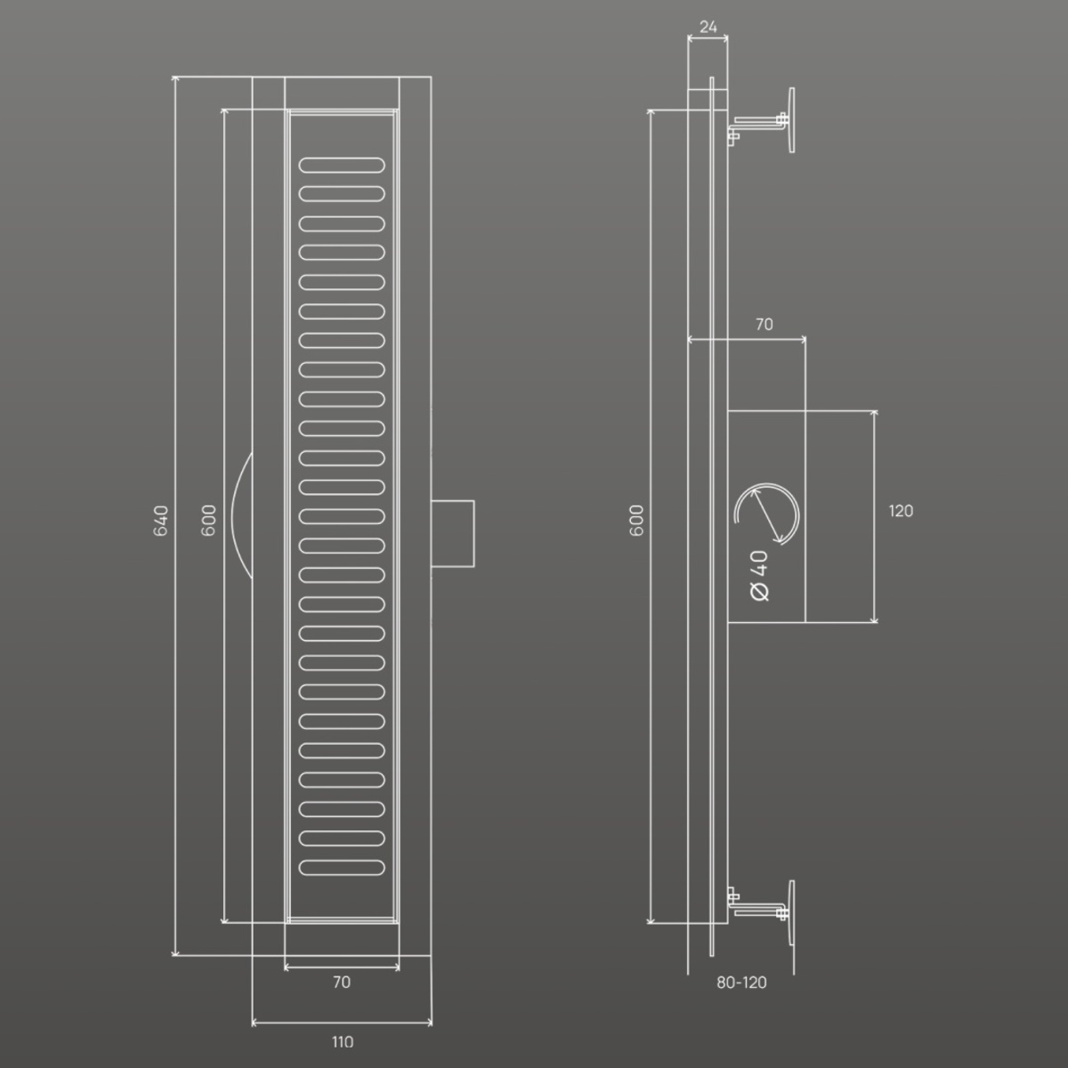 Диаметр сливого отверстия: 40 мм (в комплекте переходник на 50 мм).